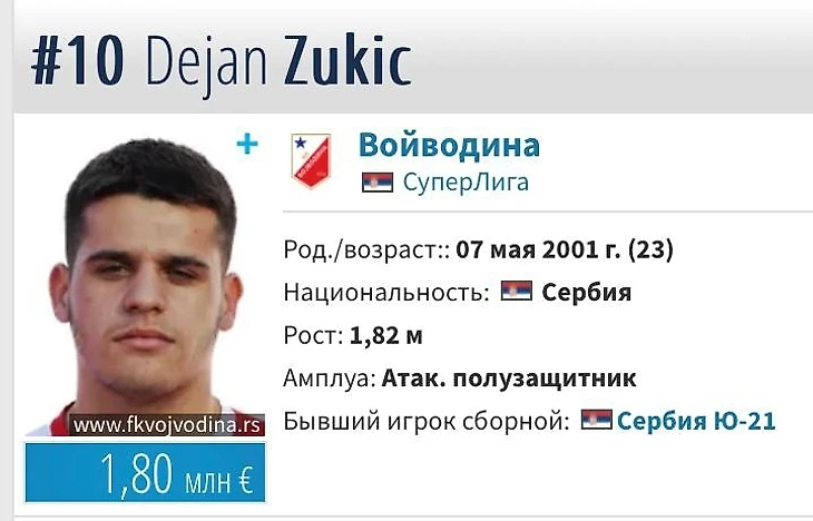 ПФК ЦСКА готов предложить 2 млн евро за атакующего полузащитника сербской «Войводины» Деяна Зукича, утверждает Mozzart Sport.