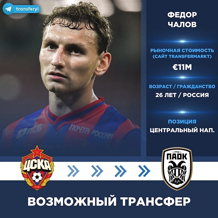 Окончательное решение о переходе или не переходе в греческий клуб Чалов примет после этой встречи, уточнили собеседники. «РБК Спорт» обратился за комментариями в ЦСКА. 21 июля «РБК Спорт» сообщил, что футболист намерен перейти в ПАОК. Журналист Иван Карпов написал в своем телеграм-канале, что сделка по приобретению Чалова будет закрыта в ближайшие дни, а греки заплатят армейцам €3 млн. Эта сумма, по которой любой европейский клуб имеет право выкупить игрока без обсуждения с командой. Глава спортивного департамента ПАОКа Пантелис Томареис заявил Sport24, что переговоры по трансферу Чалова находятся на продвинутой стадии. Однако источники «РБК Спорт», отмечают, что игрок тогда взял паузу, чтобы обдумать потенциальный переход. Чалов — воспитанник армейцев, за первую команду российский нападающий выступает с 2017 года. Вторую половину сезона 2021/22 Федор провел в швейцарском «Базеле» на правах аренды. Соглашение форварда с ЦСКА рассчитано до конца июня 2025 года. Интернет-портал Transfermarkt оценивает рыночную стоимость 26-летнего футболиста в €12 млн. За последние два сезона он забил на клубном уровне 40 мячей, что является лучшим показателем среди российских форвардов.