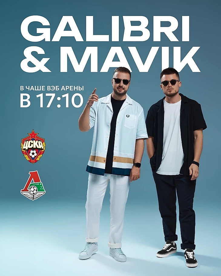 В 17:10 перед стартовым свистком в чаше ВЭБ Арены выступит группа Galibri&Mavik