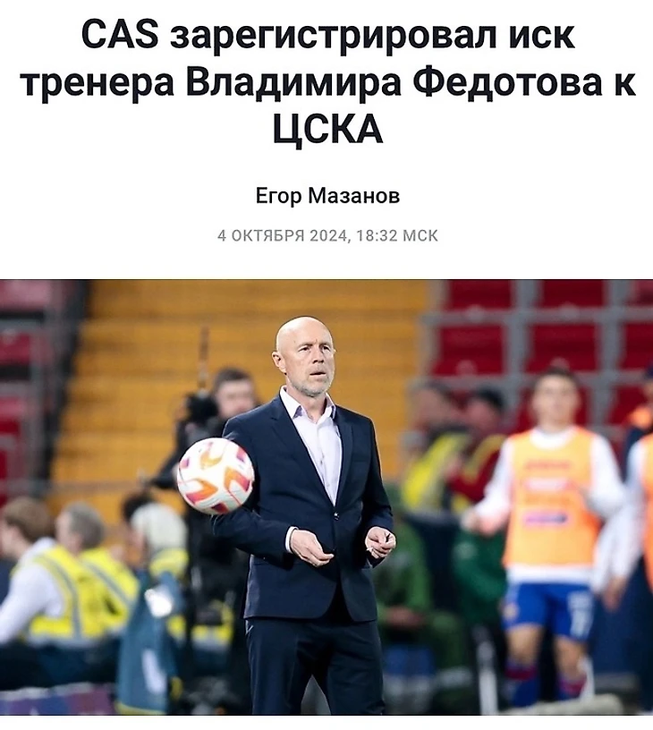 Спортивный арбитражный суд зарегистрировал иск тренера Федотова к ЦСКА