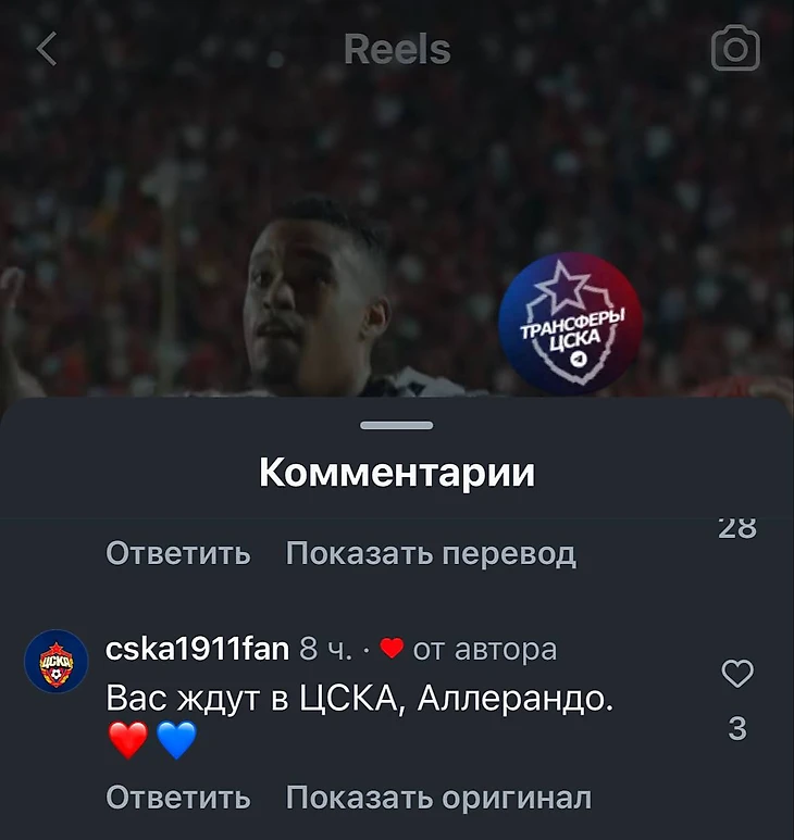 Измногочисленных комментариев, Алеррандро поставил свой лайк именно под комментарием, где болельщик ЦСКА написал, что ждет его в команде.