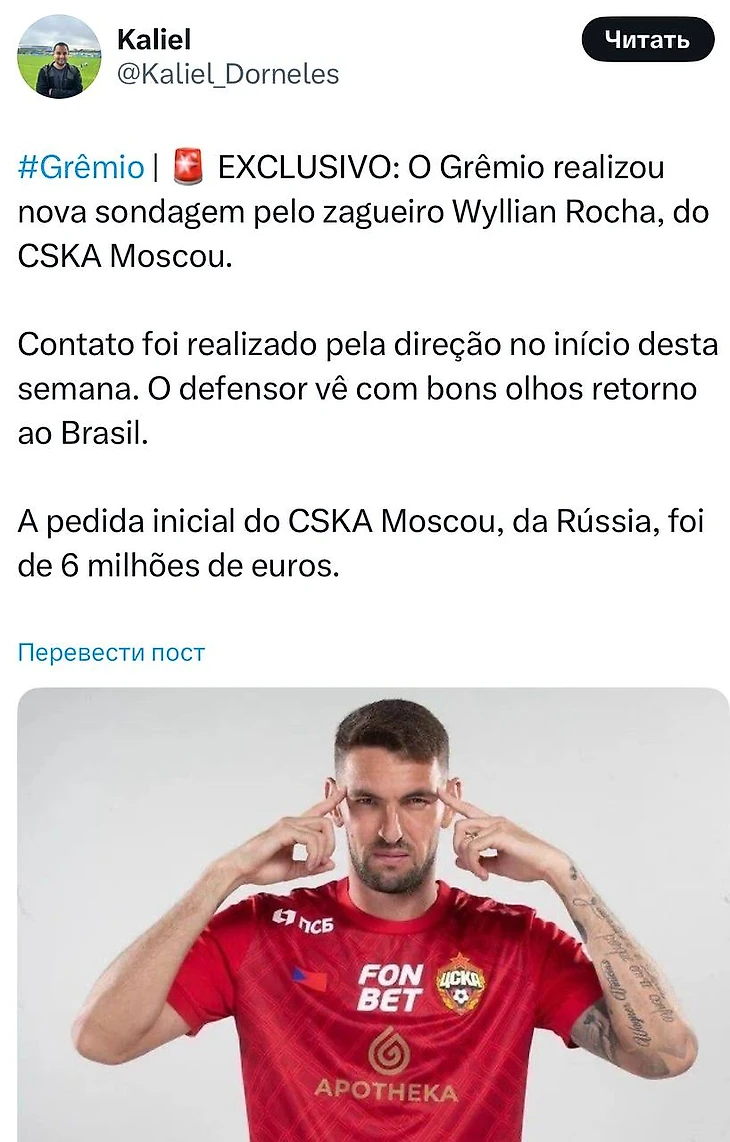 ЦСКА первоначально выставил ценник в 6 млн евро. Верим?