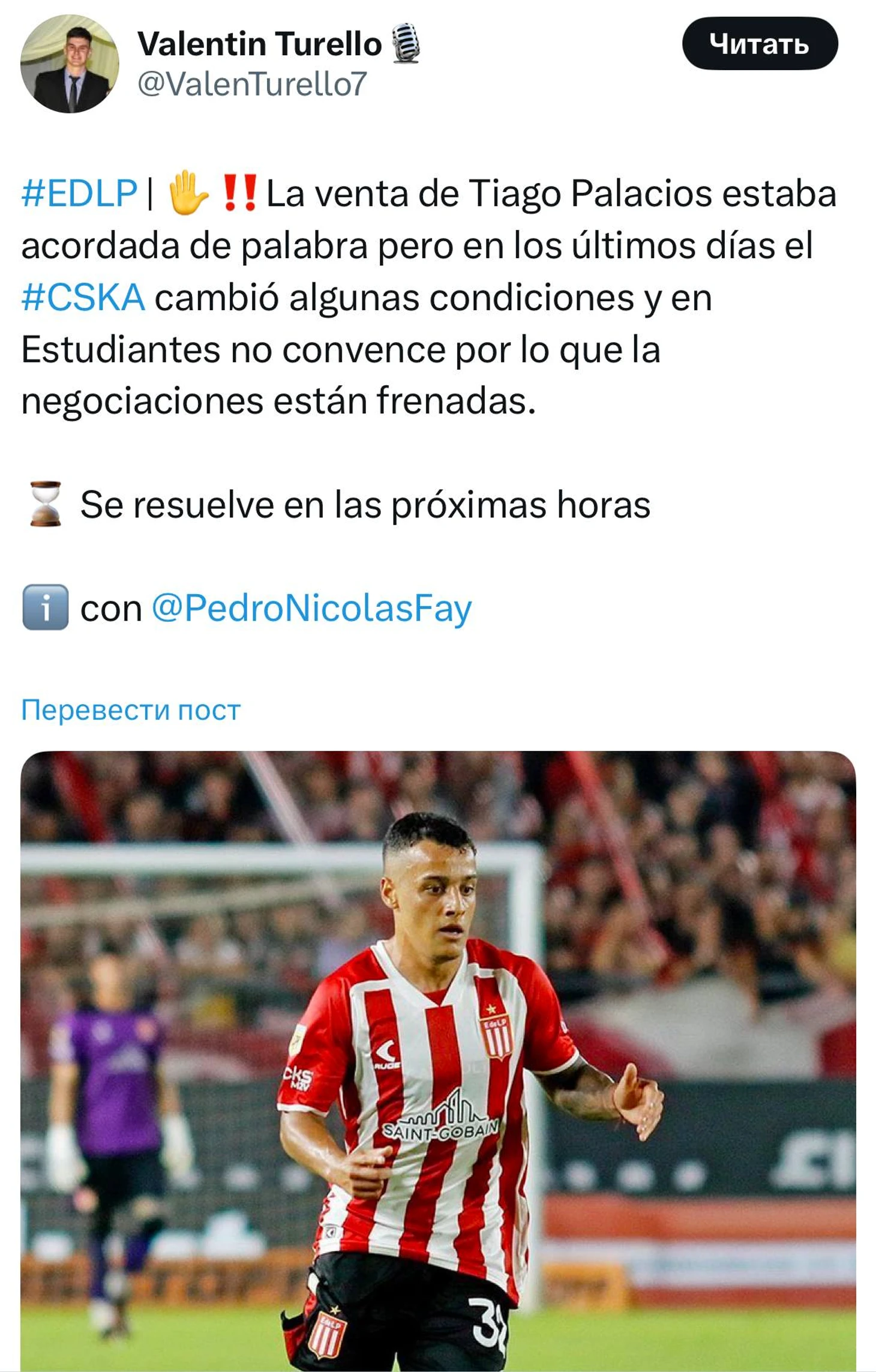Переговоры по переходу Паласиоса в ЦСКА зашли в тупик, — Valentin Turello