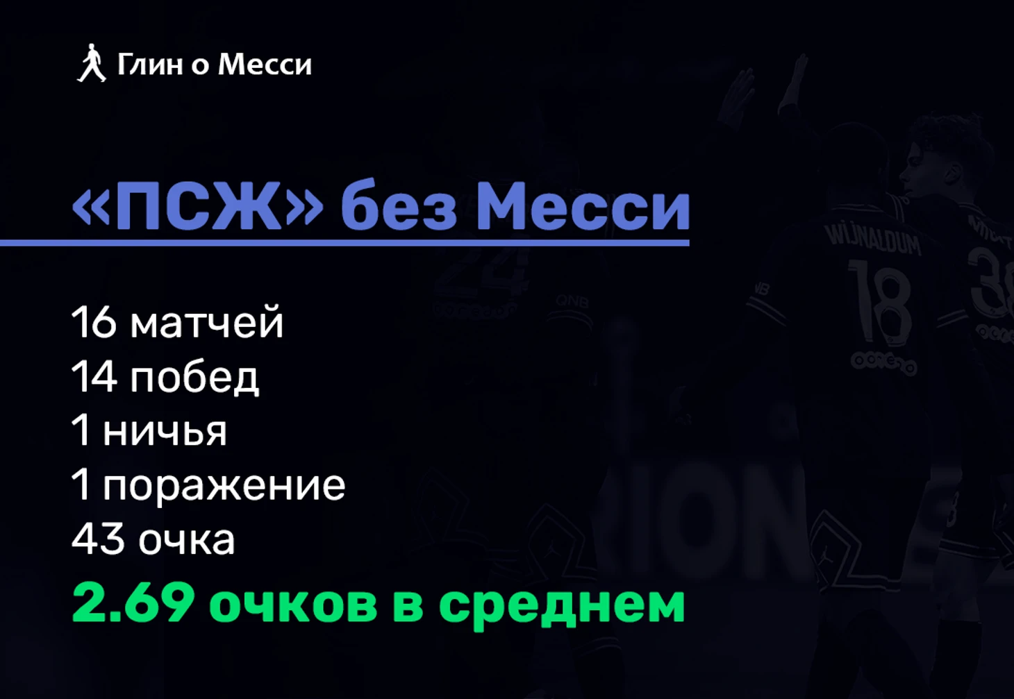 Что же, в данном случае не обязательно сводить спор к навешиванию ярлыков и метафизической статистике xG. После неудачных матчей походу этого сезона Лео взял немало отгулов, предоставив нам шанс оценить уровень команды без его предголевой помощи. Таким образом мы получили достаточно большую выборку матчей «ПСЖ» как с Месси, так и без его участия, а значит можем сравнить его вклад в игру не по промежуточным показателям вроде обводок и передач, а по конечным, таким как набранные очки, забитые и пропущенные голы команды.