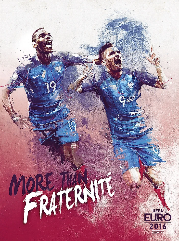 По заказу ESPN французский иллюстратор Флориан Николь нарисовал 24 плаката, которые посвящены командам-участницам европейского первенства.