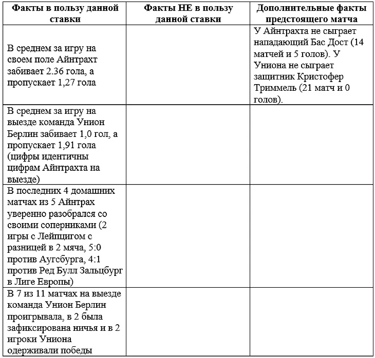 Предлагаемые к рассмотрению ставки – победа Айнтрахта