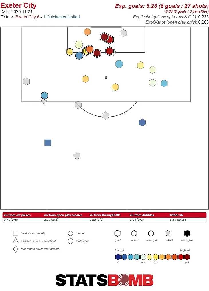 Случай вопиющего дополнения статистики, но даже исключая эту игру, «Эксетер» по-прежнему занимает первое место во второй лиге, как по созданным xG, так и по xG за удар. Сохранение такого уровня креативности может помочь им быть дальше, чем поражение в финале плей-офф в прошлом сезоне.