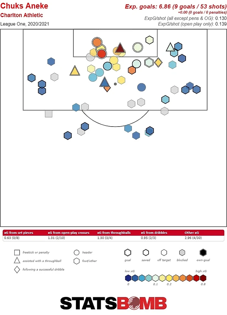 Эффект игры с замены реален, но он не для того, чтобы преуменьшить влияние игрока. Анеке объективно (и субъективно) показывает один из лучших результатов среди форвардов в лиге. Если не учитывать его монументальные выходы со скамейки запасных, то его вклад в 0,52 гола за 90 минут, начиная с самого начала станет 5-м лучшим показателем в Первой лиге. В добавок ко всему этому, для игроков, сыгравших не менее 900 минут в этом сезоне, Анеке является лидером лиги по всем ударам за 90, xG за 90 и голам за 90 минут.