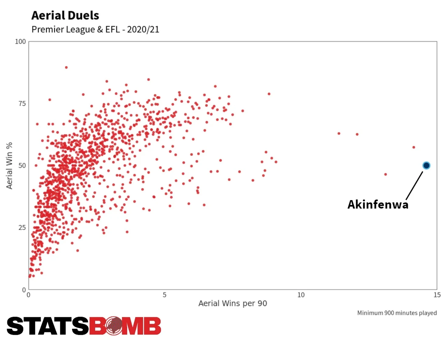В прошлом сезоне в Лиге Один он в среднем вступал в 9,7 единоборств вверху за 90 минут, что является лучшим показателем для игроков с более чем 1200 сыгранными минутами, но в этом сезоне он вывел свое господство в воздухе на новый уровень, несмотря на повышение в классе, в более физически сильную Лигу — Championship. Его текущий показатель 14,6 выигранных верховых единоборств за 90 минут, является лучшим показателем в четырех высших дивизионах Англии.
