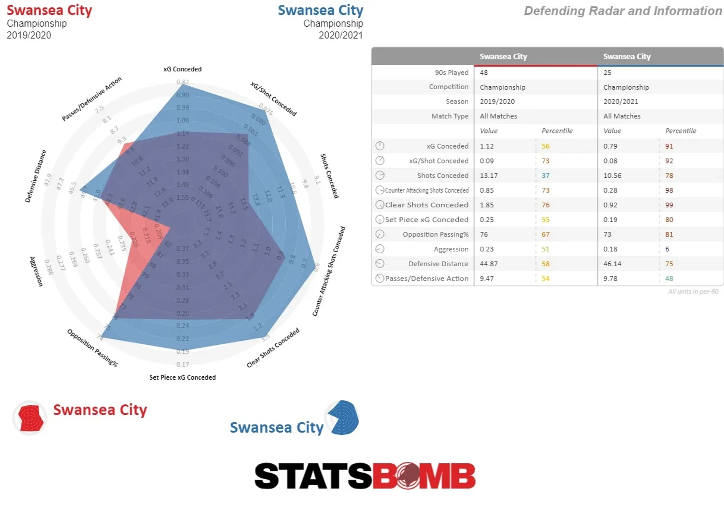 Проще говоря команда не допускает по настоящему опасных моментов. «Лебеди» за весь сезон допустили всего 11 ударов со значением xG выше 0,30. Говоря доступным языком, они очень редко допускают возникновения каких-либо явных моментов у своих ворот. Такая скупость может дать им силы для возвращения в Премьер-лигу.