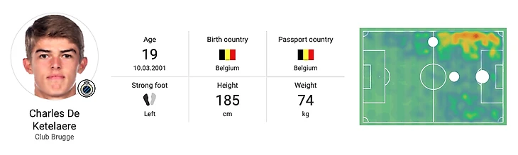 Как уже было сказано о ком-то более важном, футбол Шарля Де Кетелэра «скорее эстетичен, чем полезен». Являясь продуктом академии Брюгге, он входит в состав команды с конца 2019 года и уже может похвастаться одним бельгийским титулом. В этом году он забил 2 гола в Лиге чемпионов против «Зенита» и очень близко подошел к тому, чтобы привести «Брюгге» к историческому достижению - раунду одной шестнадцатой, во время последнего матча группового этапа в компенсированное время против «Лацио», исполнив угловой удар, который ударился о перекладину.