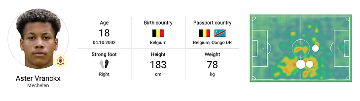 Вы понимаете, что натолкнулись на нечто особенное, когда обнаруживаете, что молодой игрок уже умеет покрывать поле от штрафной до штрафной, полностью соответствуя роли полузащитника (бокс-ту-бокс). Обычно это требует времени, и игрокам нужно как бы добавлять слой за слоем, прежде чем их футбол можно будет считать целостным. Астер Вранкс, похоже, не получил этих указаний, и в 18 лет он уже является одним из самых важных игроков Мехелена (в бельгийской Jupiler League): он успел поиграть более чем удачно и в качестве крайнего полузащитника, треквартисты и связующего центрального полузащитника. Его сильное тело, идеально сложенное для игры в футбол, безусловно, пригодится на поле, но присутствие самого Астера - редкость для игрока его возраста. Его основные преимущества это - элегантные подкаты, мощные и точные удары, хитрый дриблинг, быстрые вертикальное продвижение мяча обеими ногами (он правша с хорошей левой) - наблюдение за его игрой - пища для души.