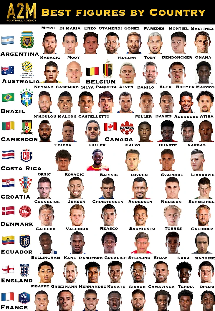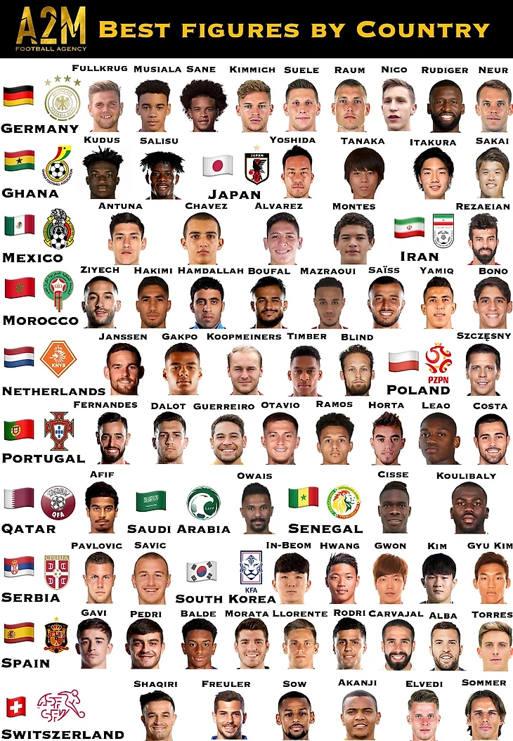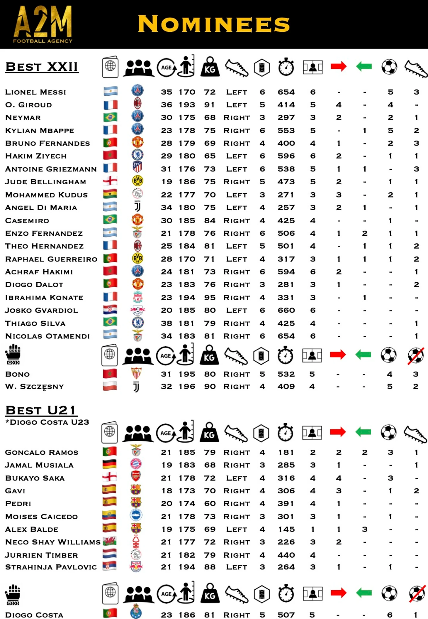 Занимательная инфографика: 22 лучших, сборная u21, сравнительные чарты ключевых показателей по позициям. Выбор футбольного агентства A2M
