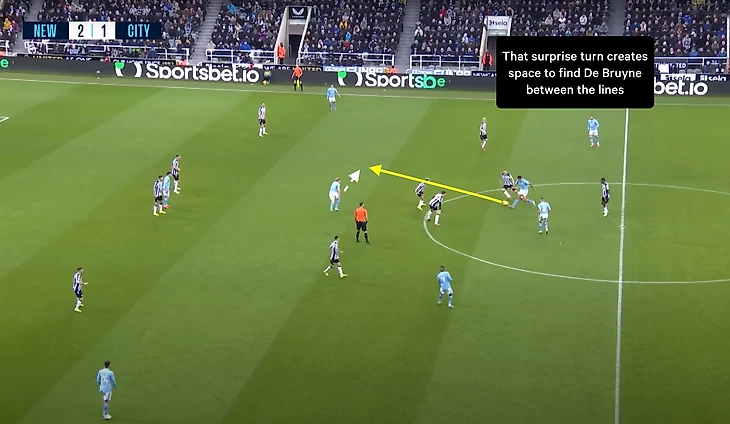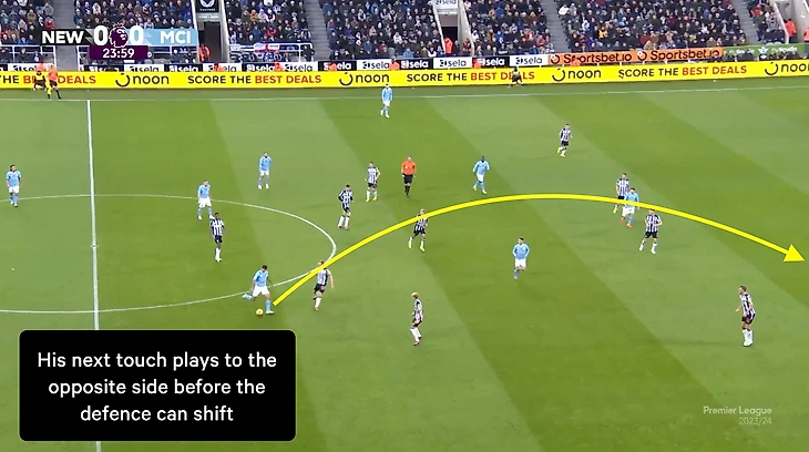 Вот Родри проделывает этот трюк против «Ньюкасла»…