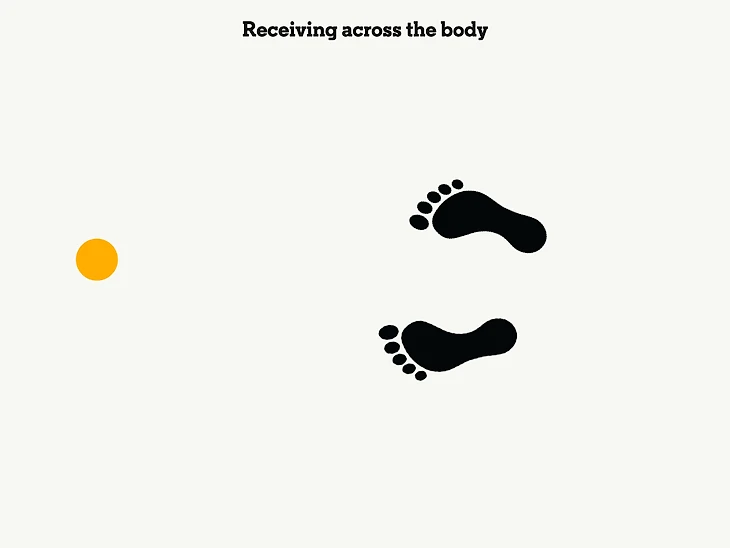 Эти небольшие индивидуальные различия наиболее заметны, когда передача приходит с доминирующей стороны игрока, поэтому прием через корпус будет означать прием мяча слабой ногой. В этой ситуации все еще возможно выполнить следующий пас предпочитаемой ногой, но если они так сделают, то не смогут таким же образом защищать мяч своим телом. Углы становятся менее естественными.