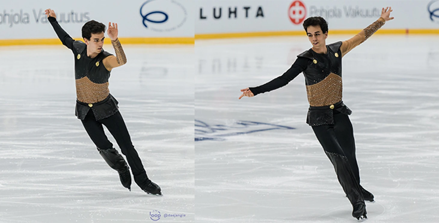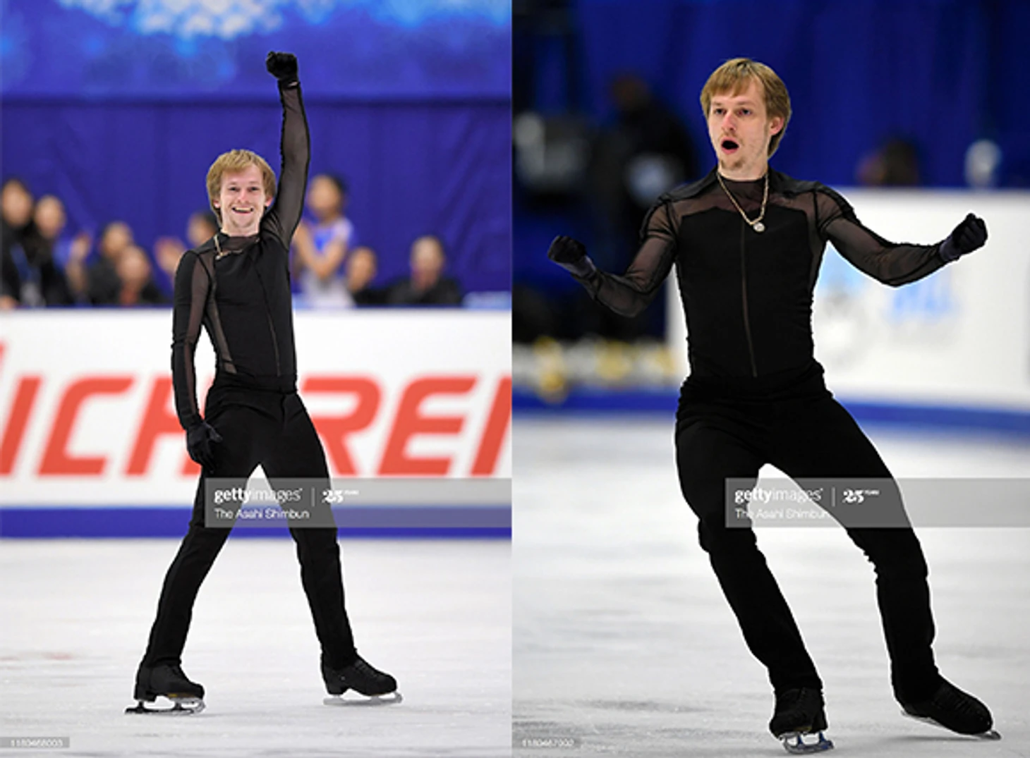 Целый сезон программы Самарина и его хорео мувы дарили мне неизгладимое удовольствие. А вот костюм к короткой программе радовал глаз без всякой иронии. Прямолинейно горячо и по-мужски лаконично. И хорошо посажено на фигуру. Особенно брюки. Что не раз подчеркивалось вышеупомянутыми хорео мувами.