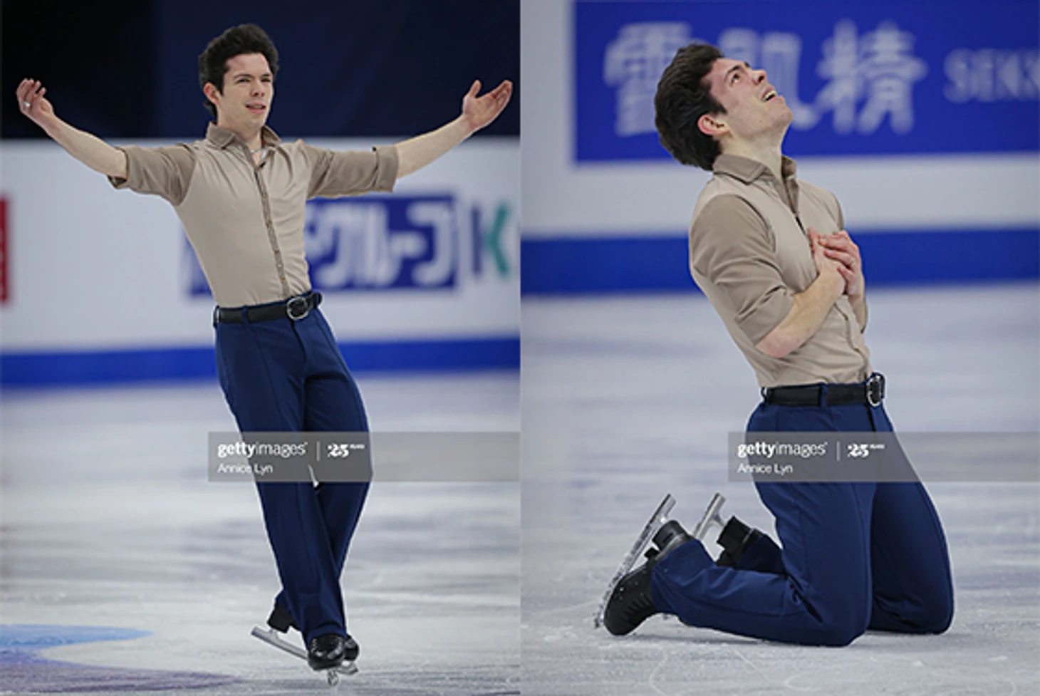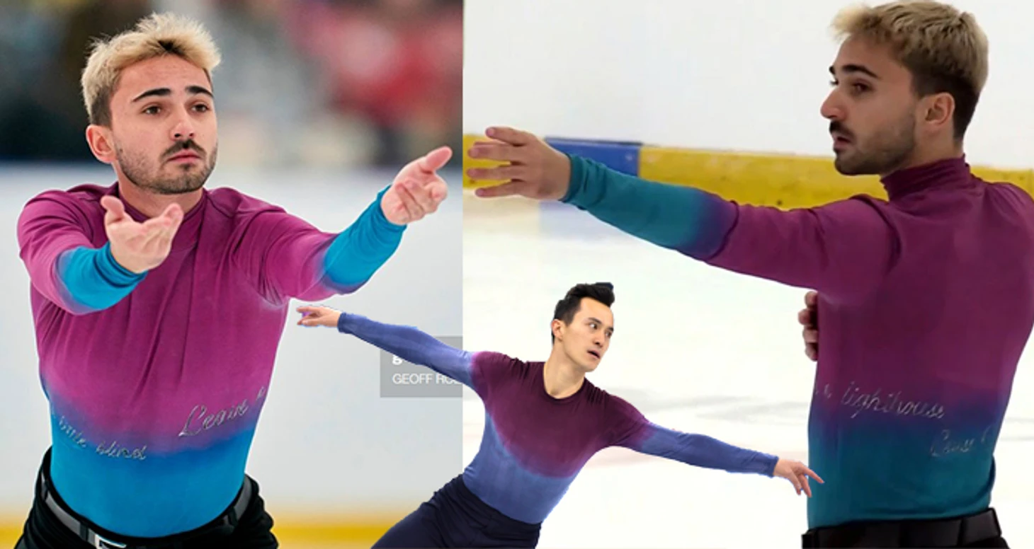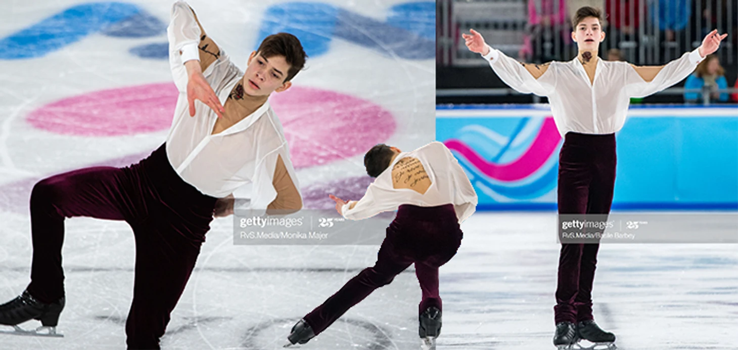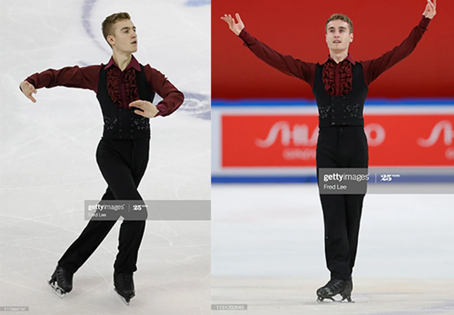 К национальному чемпионату Шома подумал и решил, что он не ежик отставать от трендов и тоже обзавелся рубашкой в оттенке года. Рубашка классная, идея с фигурными вырезами – манифик, посадка классических брюк просто улет – всем учиться. И все было бы шикарненько…Не наступи Шома на любимые грабли из шкафа фигуристок – коварную телесную сетку) *демонический смех*