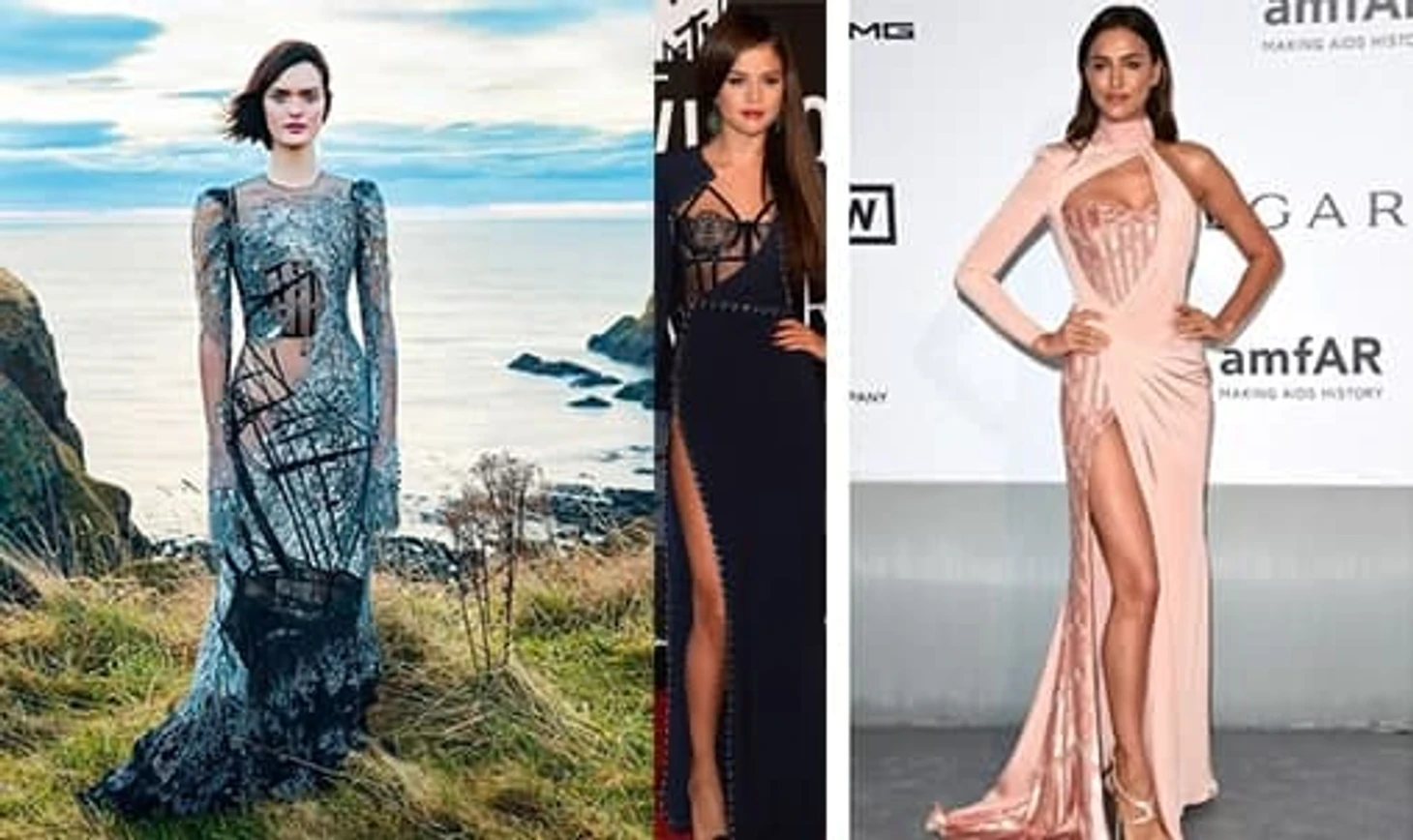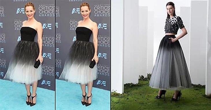 Неброский синий полюбился Мириам еще с прошлого сезона. А в этом девушка открыла для себя драпировку и сборку) Верх платья можно оставить за скобками. Вырез сердечком, стразы и рукава из сетки – все это напоминает типичные платья американских одиночниц. Но юбка определенно заслуживает внимания! Какая оригинальная сборка! Эх, был бы верх поинтереснее, поатмосфернее что ли…