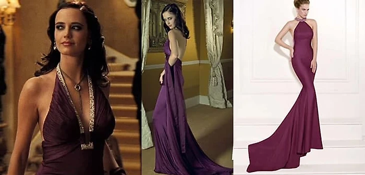 В платье Саши мне нравится все, кроме разреза по самую печень (упс, не тот бок) и цвета. Сейчас объясню. Я понимаю, что это отсылка к фильму. Но другая ткань, оттенок и подача сделали его ближе к выпускному, чем к платью подружки Бонда. Сложный цвет. И его нужно знать, как правильно подать. А вот украшение, переходящее с горловины на спину выглядит здорово.