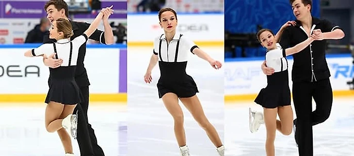 Мой любимый американский интернационал радовал лаконичным черным с белыми просветлениями. Его кофтец источал намек на дизайнерский лонгслив Нейтана Чена за авторством одной небезызвестной Верочки. Только на пару размеров больше и с двумя полосками. Ее платье – комбез Ксюши Столбовой и прекрасное платье Маши Артемьевой, которое я помню до сих пор(!).
