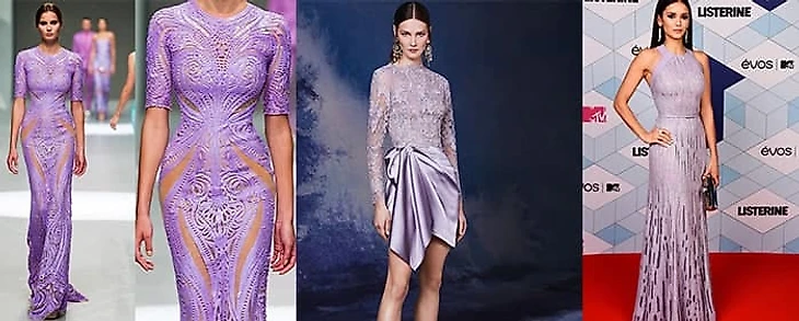 Белое платье с легким чихом лавандового градиента запомнилось своим лаконизмом и кружком макраме шнуровкой сбоку. Да-с, можно увезти девушку от Рябенко, но нельзя вывезти Рябенко из девушки) Тянет их к этим тесемочкам как мух на Доширак. Ладно-ладно, в целом, симпатично. Но хотелось бы перекроить верх. Слишком уж похож на майку и простит образ.