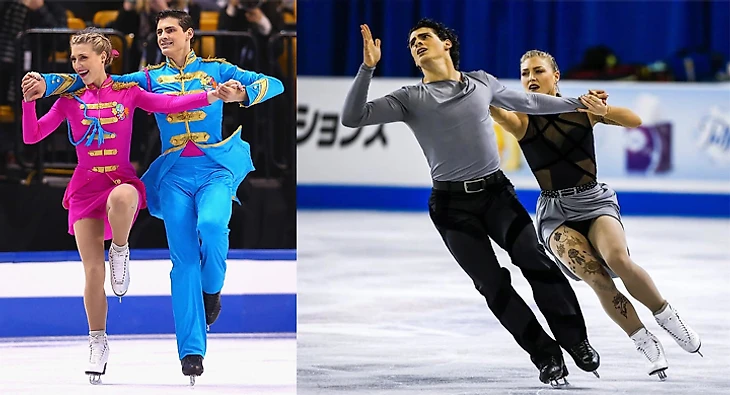 А открывают наш показ фигуристы, получившие гран-при за самые креативные костюмы. Костюмы Пайпер Гиллез Поля Пуарье, как и их танцы, настолько самобытные, что я даже не знаю, как их оценивать наравне со всеми. Они занимают свою нишу. Они могут нравиться, или не нравиться, но забыть их точно не получится. Так что в этом показе они как бы вне конкурса, но и не отметить их я не могла.