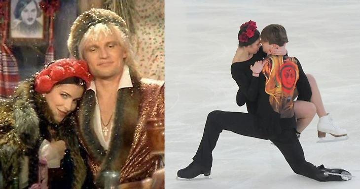 В коротком танце немцы Кавита Лоренс - Панагиотис Полизоакис катались под звуки музыки, под которые как-то принято кататься именно в оттенках голубого. Наверное, из-за киношного прототипа.