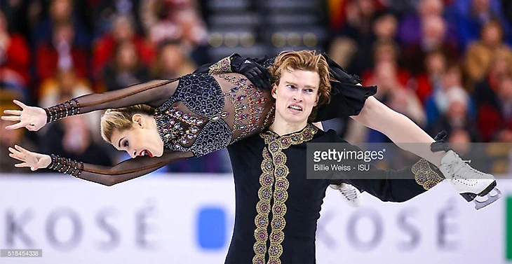 Можно шутить про то, что у Кейтлин Уивер - Эндрю Поже точно есть связи в государственной казне Канады, иначе откуда все это богатство в виде россыпи жемчугов?) Но роскошного и величественного вида у них не отнять. С момента их появления на льду понятно, что перед нами не просто влюбленные, не дебютантка бала со своим кавалером, ни даже принц с принцессой – перед нами их августейшие Величества король и королева, открывающие своим танцем бал. И никак не меньше. Что что, а подать себя они умеют. Можно сказать, что для полноты образа Эндрю не хватает только шпаги и короны) Но я в восторге от его костюма. Я много раз подробно описывала фраки, так что лишь констатирую факт – Эндрю выглядит сногсшибательно.