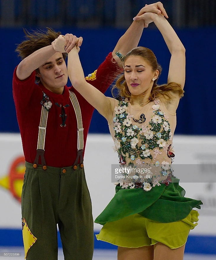 Зеленый цвет и его оттенки считаю незаслуженно "забытыми" в фигурном катании. Как-то этот цвет не пользуется популярностью, поэтому хочу отметить "смельчаков" Сесилию Торн - Джусивилле Партонена. Костюмы простые, лаконичные, во все никак не проходящем бельевом тренде. Костюм с одной фишкой. Это то, о чем я многократно говорю - да, существует множество классных приемов и штучек и да, так и хочется сделать и то, и это, и розу сверху, и аж глаза разбегаются от всего многоообразия....но держите себя в руках. Чтобы фишка прозвучала, лучше выбирайте что-то одно: цвет, крой или отделку. Финны выбрали цвет.