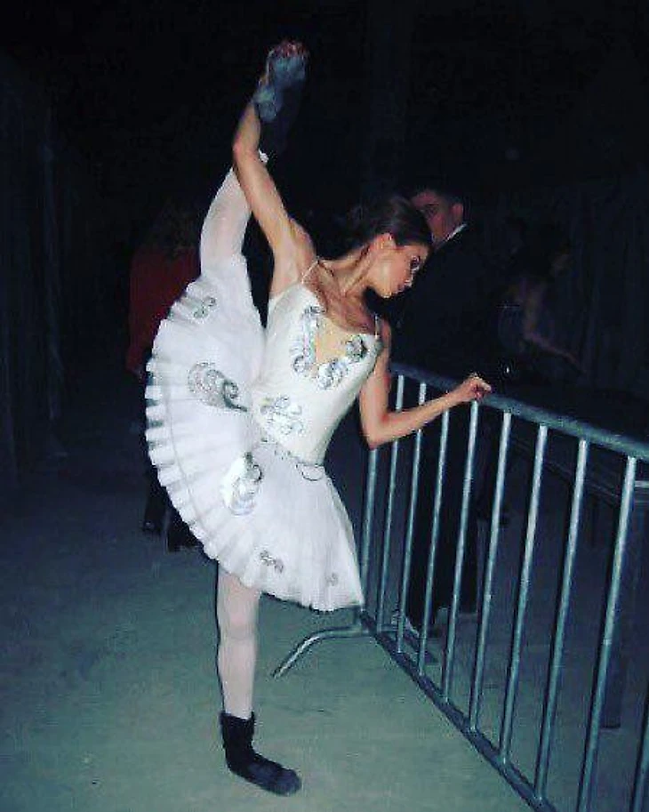 – Запомнила еще одну вещь. У балетных артистов ценятся иксовые ноги – когда при взгляде в профиль в районе колена они выгнуты назад. Как у меня. У многих не так – колени наоборот недотянуты. Чтобы это исправить, нам давали специальное упражнение. Садишься на пол, ноги на скамейку. Другая девочка всем весом садится к тебе на колени и продавливает их внутрь. Мне было не больно, я этим пользовалась. Педагогиня просекла фишку.