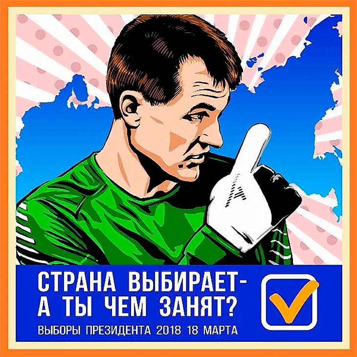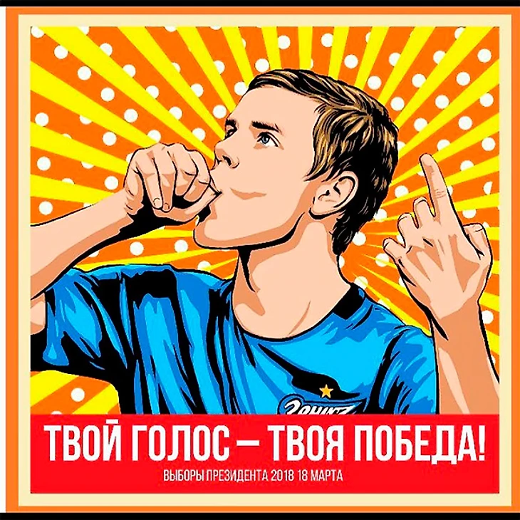 Российские футболисты призывают своих подписчиков в инстаграме прийти на выборы 18 марта. Сегодня агитационный плакат опубликовал Александр Кокорин, три дня назад картинка в точно такой же стилистике появилась у Артема Реброва.