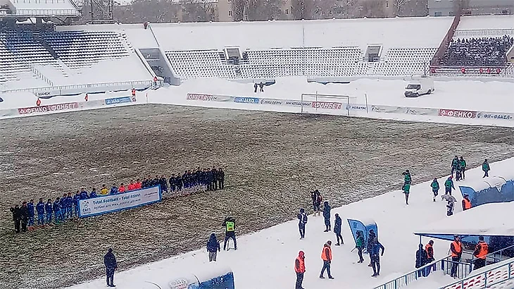 Матч был под угрозой отмены до стартового свистка. В городе выпало около 20 сантиметров снега – он шел ночью, за час до игры пошел снова. Деться от него некуда. Инспектор и делегат оценили состояние стадиона, решили играть. А сложные погодные условия на открытых стадионах распространяются на всех.