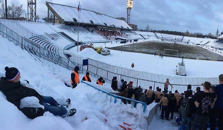 Слова о том, что на стадионе не убирались, – неправда. Стадион убирается с января: с поля и кресел снимается снег. И фанатский сектор чистили. Просто перед игрой не стали убирать те места, на которые не продавались билеты. Какой в этом смысл? По протоколу – пришли 1100 человек, по факту – 700. Зачем убирать 32 тысячи мест? Надо же реально смотреть на вещи. На улице 13 градусов мороза, метровые сугробы. В день встречи выпадает еще 20 сантиметров. Убрать их на всей арене у нас не хватит средств и сил.