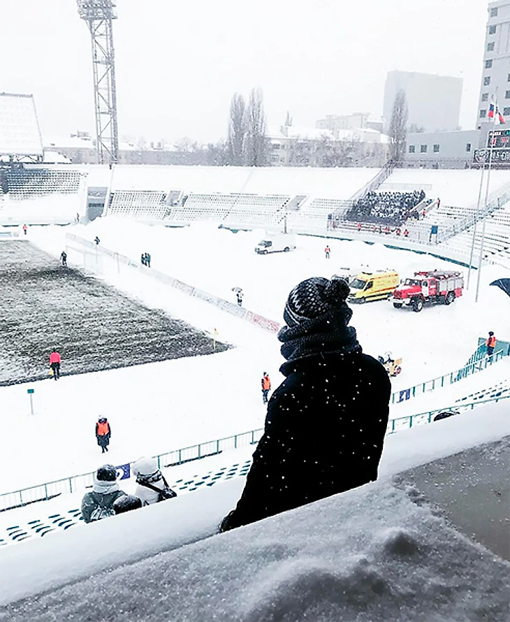 – У нас за воротами тоже люди падали – скользко, лед. Только снега еще больше. Если на Восточной трибуне хоть что-то расчищено, то у нас вообще ничего не чистили в принципе. Мы для себя расчищали сами. Снега на секторе оказалось по колено. Ребята забирались на верхние порожки и спускались с них, как с горки. Но даже для фанатов такая погода не по приколу. Кому интересно в сугробах стоять? Думаю, никому.