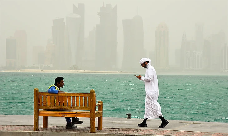 В пустыне я застал +47, что при минимальной влажности воспринимается как +35 в Москве, а белая рубашка даже остается чистой. В городе было +42, но больше 15 минут пешком там никто не ходит, а во всех помещениях (даже подземных переходах) есть кондиционеры. Лайфхак от местных – вылезать из дома под вечер. Часто в Катаре случаются песчаные бури – дышать можно, но 200-метровые небоскребы на расстоянии двух километров трудно различимы. В этот момент солнце выглядит как луна – смотреть на него реально без темных очков, можно не пользоваться солнцезащитным кремом.