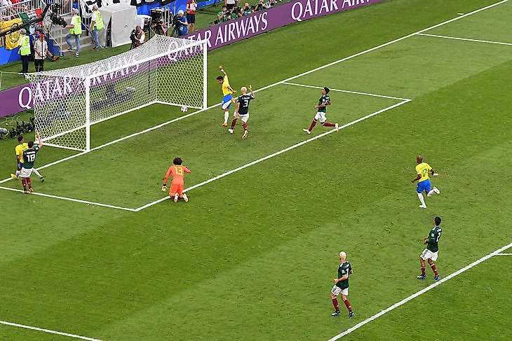 Наблюдать за этим со стадиона особенно приятно. Ней запутывал мексиканцев, особенно Альвареса, который до этого играл с ним на фланге. Альварес не пошел в центр – он подхватил пришедшего сюда Габи Жезуса. Пока все внимание было на нем и главной звезде сборной, по флангу прорвался никем не опекаемый Коутиньо и пробил.