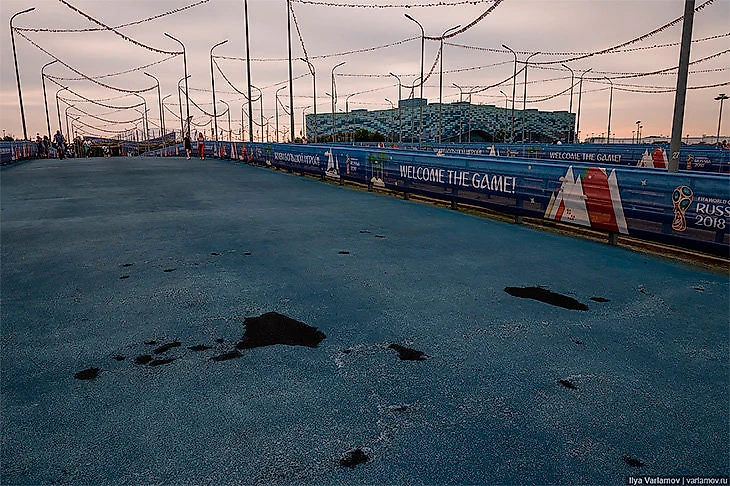 – Тут надо понимать, что все засохло. Там больше нет газона и деревьев. Это выкинутые деньги. И вообще эта территория никогда не будет использоваться. Она была нужна только на четыре матча. Засыпать все песком и воткнуть деревья – это можно сделать за неделю. А толку? Что будет дальше? На фото деревья по 20 сантиметров. Если бы они не засохли, сколько лет надо, чтобы они выросли? Чтобы появилась тенистая аллея, по которой приятно пройти? Чтобы смотреть не на марсианские пейзажи, где можно снимать фильм «Высадка на Луну» или «Освоение целины». Лет 15 надо. А они уже сейчас засохли, потому что полить эту площадь нереально. А систему автополива там, конечно, не сделали. Это все одноразовое благоустройство.
