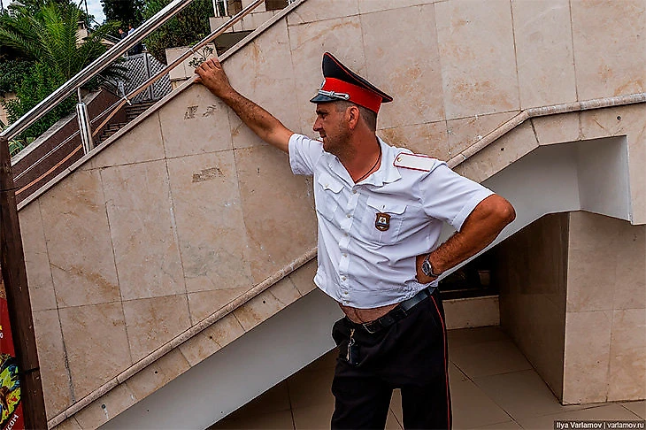 Сочи – единственный город, где в аэропорту на глазах у полиции стоит куча «такси, такси, такси». Хотя во всех аэропортах на время чемпионата их разогнали, чтобы не позорили. В Сочи поставили этих казаков. Это же отдельный ужас. В помощь полиции их поставили. Какие-то обрюзгшие, чешутся, висят, с какими-то пакетами, рыбами, неопрятные, небритые. Полнейшая жесть.
