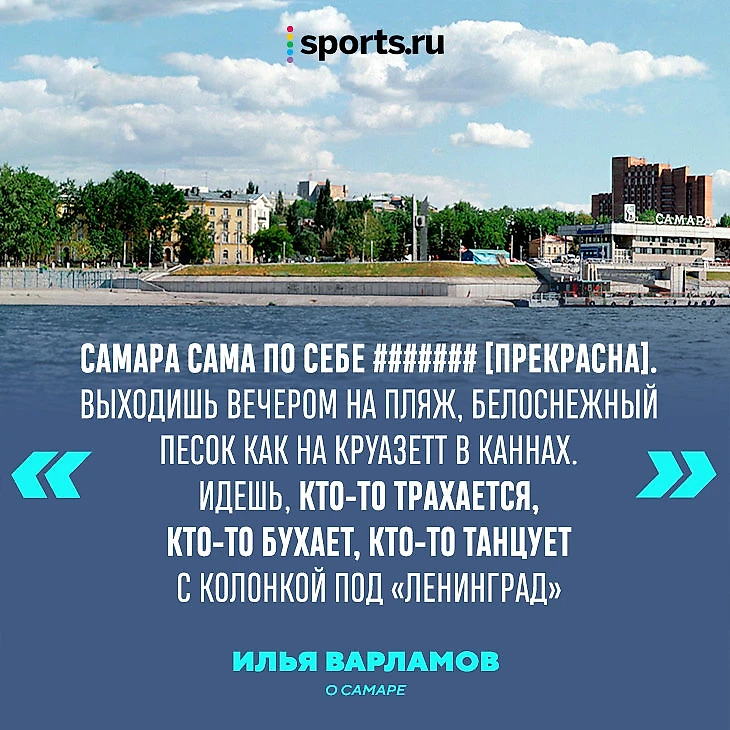 Но не будем о грустном. Ты спросил про хорошие города. Самара сама по себе ####### [прекрасна]. Это город-курорт. Там крутой исторический центр, где была фан-зона. Они перекрыли центральные улицы, все компактно. И есть пляж. Вечером выходишь на него. Белоснежный песок как на Круазетт в Каннах. Идешь, кто-то трахается, кто-то бухает, кто-то танцует с колонкой под «Ленинград».