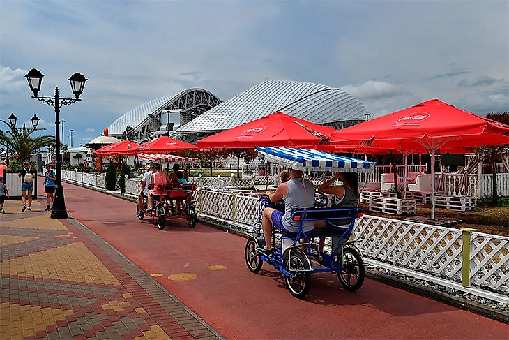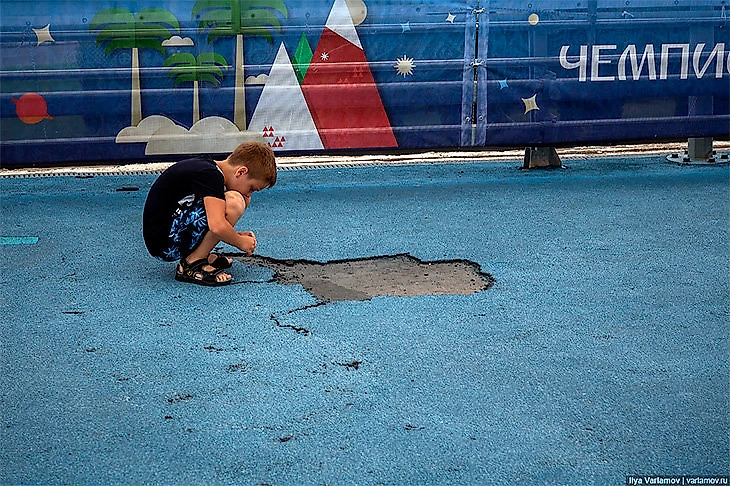 Посмотри на Сочи. Ну это ужасно. Они заполонили весь парк электромашинками, потому что там даже ходить нельзя. Велосипеды, скутеры. Гигантские асфальтовые поля. Ты понимаешь, сколько стоит поддерживать эту гигантскую территорию? А она не приносит ни копейки. Единственное, что можно делать на этих полях, – кататься на самокатах, велосипедах и проводить экскурсии на гольф-карах. При этом все приходит в упадок. Я снимал там во время чемпионата – все разваливается. Покрытия с проплешинами. А прошло четыре года. Пройдет еще пару лет – и все.