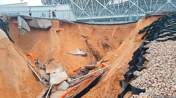 Это же не просто так. Это не стихия. Потратили миллиарды рублей и после первого ливня все смыло. Но никто не спрашивает: «Кто сидеть будет? Где посадки?». Нет такого голоса. Мы можем только в блогах это обсуждать и в интервью. А по-хорошему, депутаты региональных дум должны писать запросы, инициировать проверки. А это сейчас везде будет происходить. В Волгограде вокруг стадиона все размыло. Они начали подавать это как стихийное бедствие, но там в 200-300 метрах находится Мамаев Курган, который стоит десятки лет и не смывает. А тут первый дождь – и все поплыло. Потому что делают из говна и веток. И никто за это не ответит.