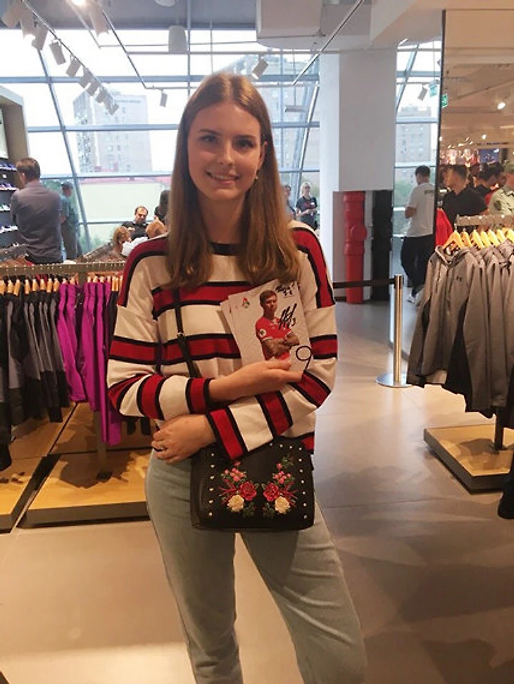 – Сегодня подписала две вещи – стандартную открытку и фото, которое сделала с Федей на «Вечернем Урганте» в мае. Я пришла сюда, потому что болею за команду и Смолова. Сильно за него переживаю со сборной, чемпионата мира. Да, не забил пенальти – и что? Он молодец, старался, все мы люди. Так получилось. Мне он нравится, потому что и игрок прекрасный, и красавчик. Милый, такой няшка-няшка.