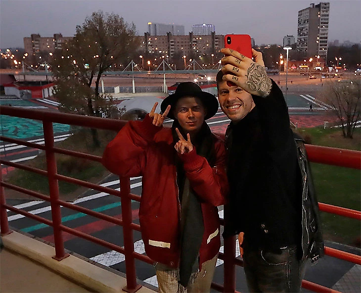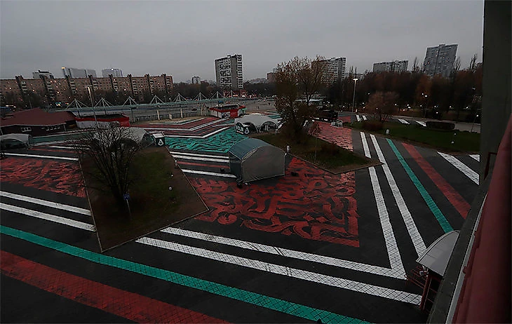 В октябре перед «РЖД-Ареной» появилось огромное каллиграфическое граффити в необычном стиле. По площади, 11 тысяч квадратных метров, оно установило мировой рекорд. Автор – Покрас Лампас, самый актуальный художник России, который стал еще популярнее, после того как сходил на шоу к Дудю. Несколько дней назад работу наконец закончили, и Покрас еще раз приехал в Черкизово, чтобы презентовать арт-объект вместе с Федором Смоловым и Ильей Геркусом.