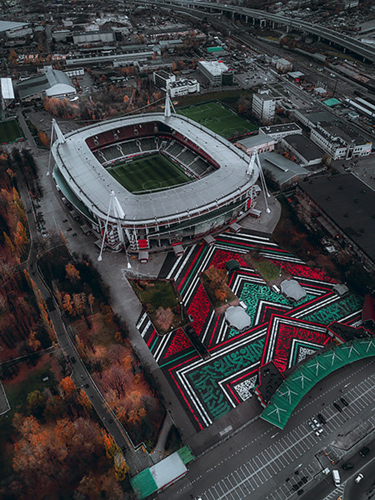 – Мне кажется, объяснить, что что-то круто, очень сложно. Это зависит от вкуса, а вкусы нельзя навязывать. Но если мы говорим в общих чертах, то это искусство самовыражения. Ты пишешь огромные буквы в больших локациях, на крышах, стенах. И скорее важно то, что за этим стоит. Мой проект не существует в отрыве, он всегда идет как дополнение к чему-то, здесь – к стадиону и клубу. И когда в комплексе все это начинает работать, тогда это круто. Видно, что за этим стоит больше, чем просто желание что-то нарисовать.