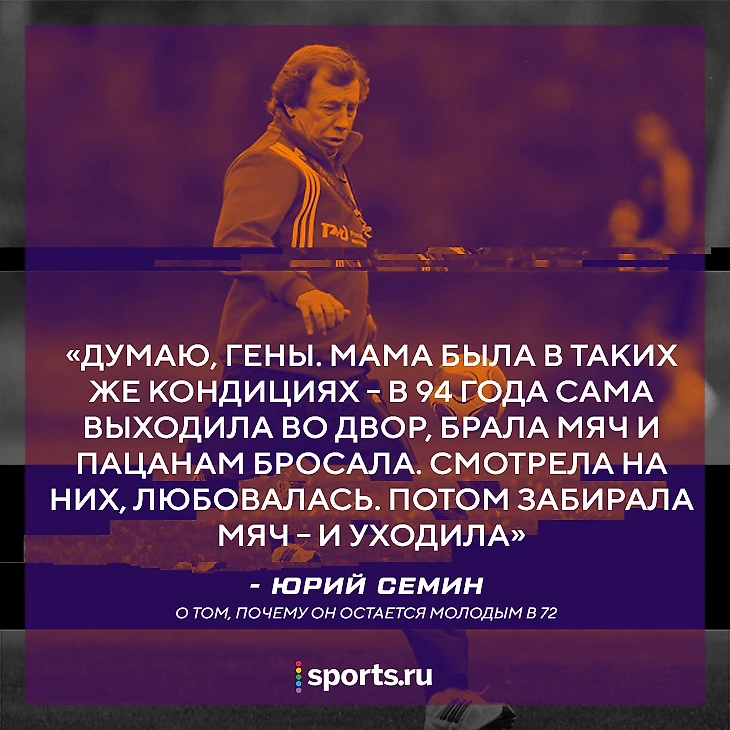 Юрий Семин – самый возрастной и при этом самый успешный тренер РПЛ последних трех сезонов. Он выиграл два кубка, Суперкубок и чемпионство и спустя 14 лет вернулся с «Локо» в Лигу чемпионов. При этом Семин выглядит энергичнее большинства людей его возраста: модно одевается (на нашу встречу пришел в укороченных светлых джинсах и ботинках без носков), ведет инстаграм, где выкладывает фото из путешествий и даже с горных лыж, выпустил книгу и совсем не собирается на пенсию – более того, находит энергию, чтобы зарубаться с руководством.