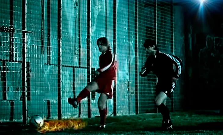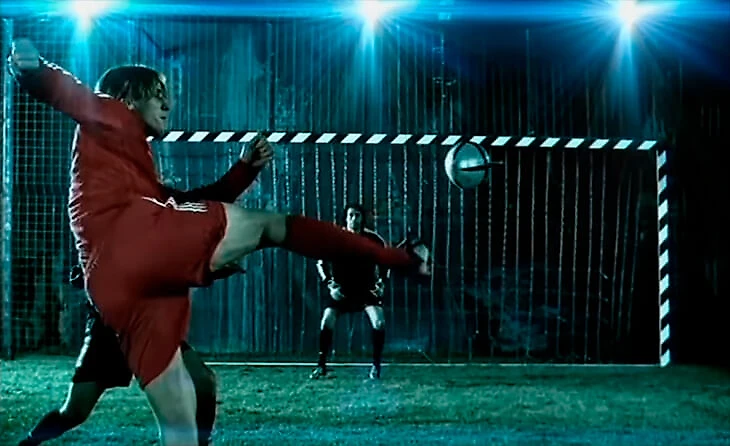 Продюсер (он же был композитором) и режиссер вместе изменили одну строчку в тексте Глеба Кальпурний («Темная ночь скроет под простынью \ Это для нас, чтобы запомнилось» – эти строки изначально были другими, но Тюрин не помнит, какими именно) и придумали сделать отсыл к уже раскрученному по миру рекламному ролику Nike, где на корабле стояла клетка, в которой рубились Анри, Ван Нистелрой, Скоулз, Мальдини, Тюрам, Давидс, Фигу и еще несколько супертопов из начала 2000-х.