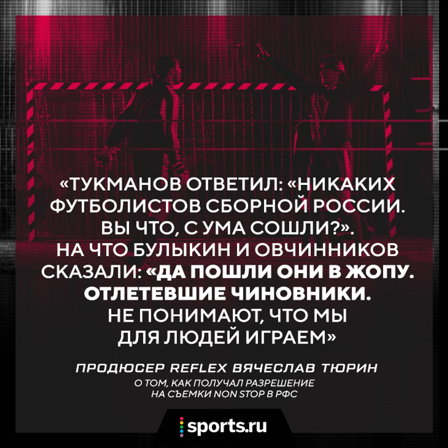 Тукманов запретил Reflex использовать образы футболистов в клипе. Булыкин сказал, что боссы РФС могут идти в жопу, и снялся без разрешения