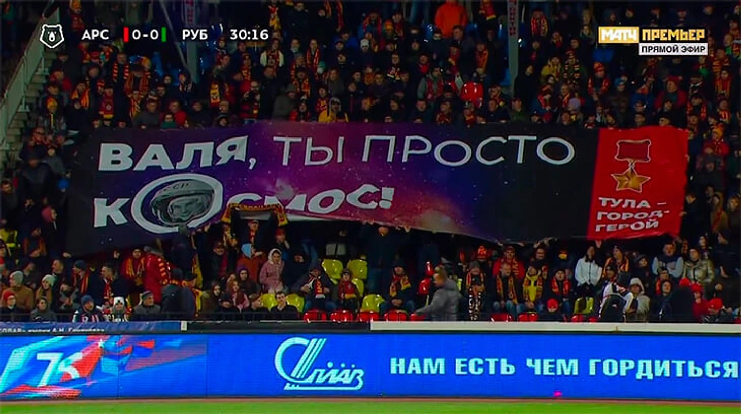 Вчера на матче «Арсенал» – «Рубин» в Туле появился необычный баннер. Вы наверняка заметили его, даже если смотрели игру по ТВ.
