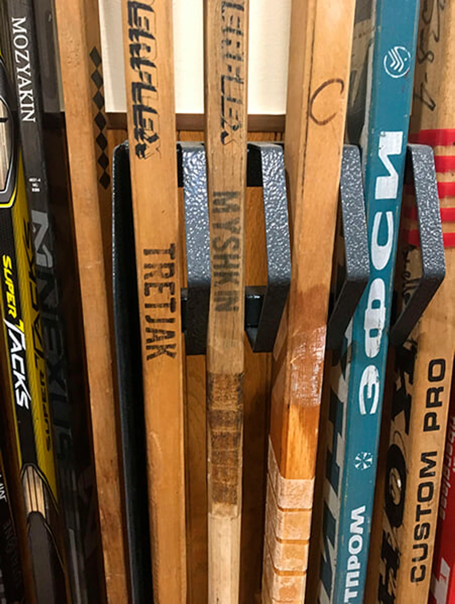 Плюс много значат тактильные ощущения и опыт. У эталонной клюшки Харламова загиб должен быть точно таким и уж точно не в другую сторону. Бывает, попадаются надписи, сделанные с ошибками. У меня есть одна такая клюшка, которая, видимо, не настоящая. Эксперты ее одну из всех не то что отбраковали – она точно из того времени. Но сказали, что вряд ли это клюшка Геннадия Цыганкова.