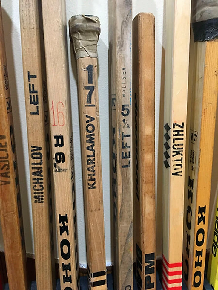 – Есть эксперты. Они смотрят год, издание, загиб, угол, центр тяжести, правильность написания личного клейма. Их же делают на фабрике, с фабрики получают в упаковках с фамилией игрока. В советское время это уже было. И все строго под индивидуальные параметры. Например, Мальцев играл коротенькими клюшками, а Якушев мог играть и длинной палкой, и короткой. Зарипов играет высокими – предел разрешенный высоты.
